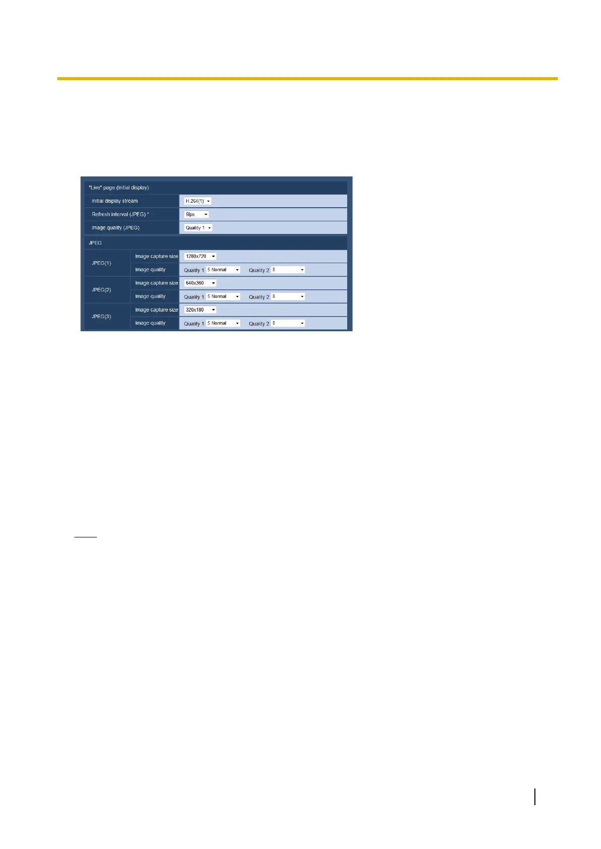 Select the image quality of JPEG images displayed initially on the “Live” page.