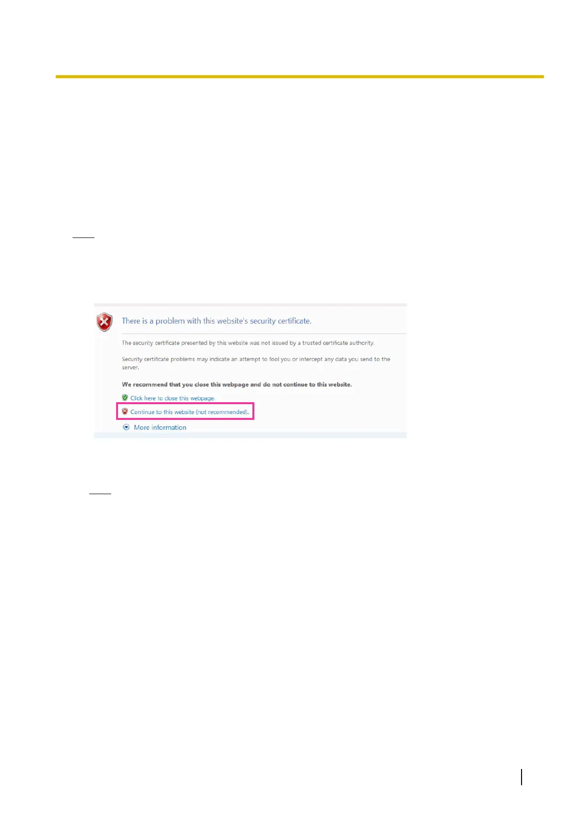 2. When the security alert window is displayed, click “Continue to this website (not recommended).”