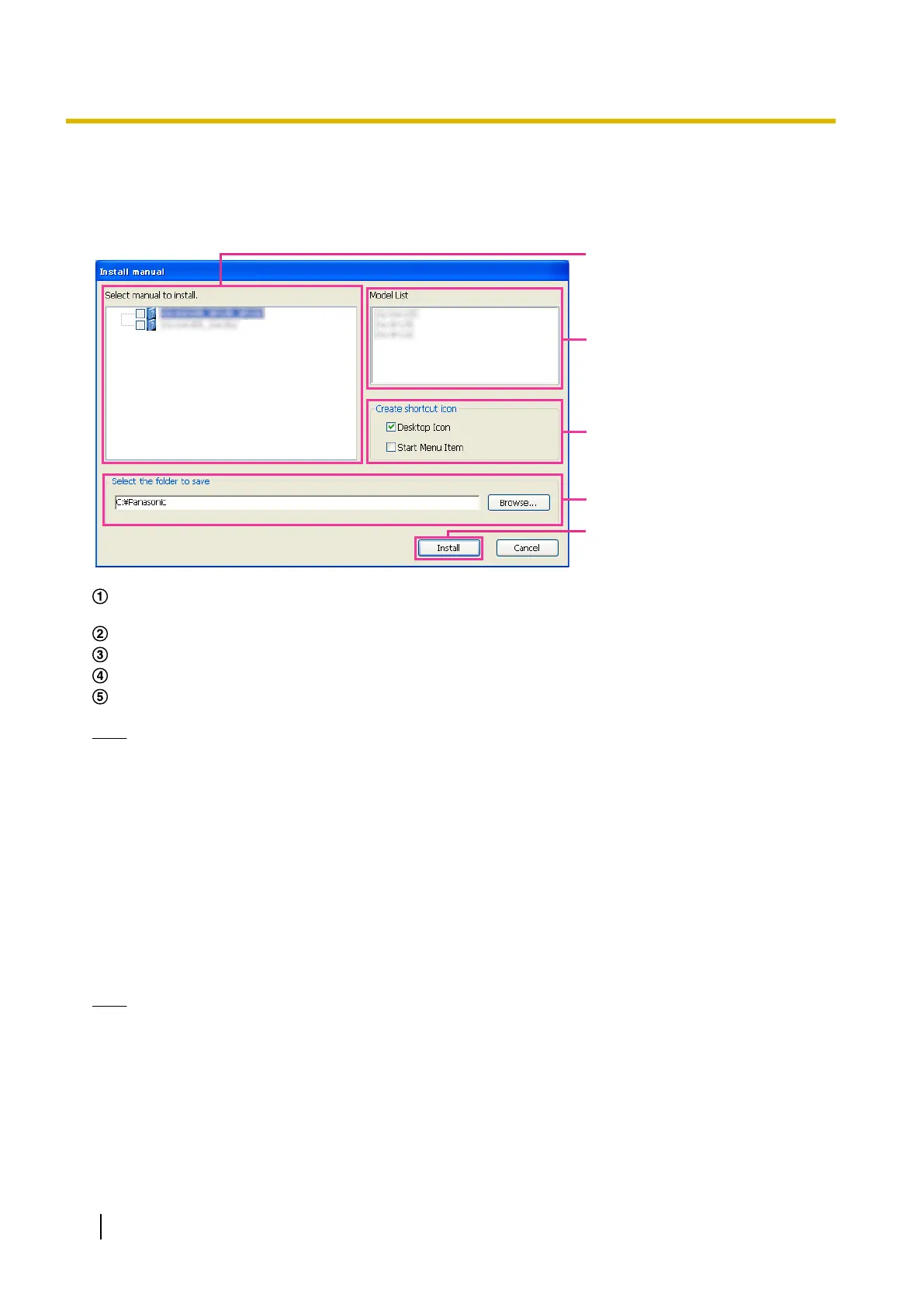 Select which manuals to install. The camera models that the manuals support are displayed in B “Model