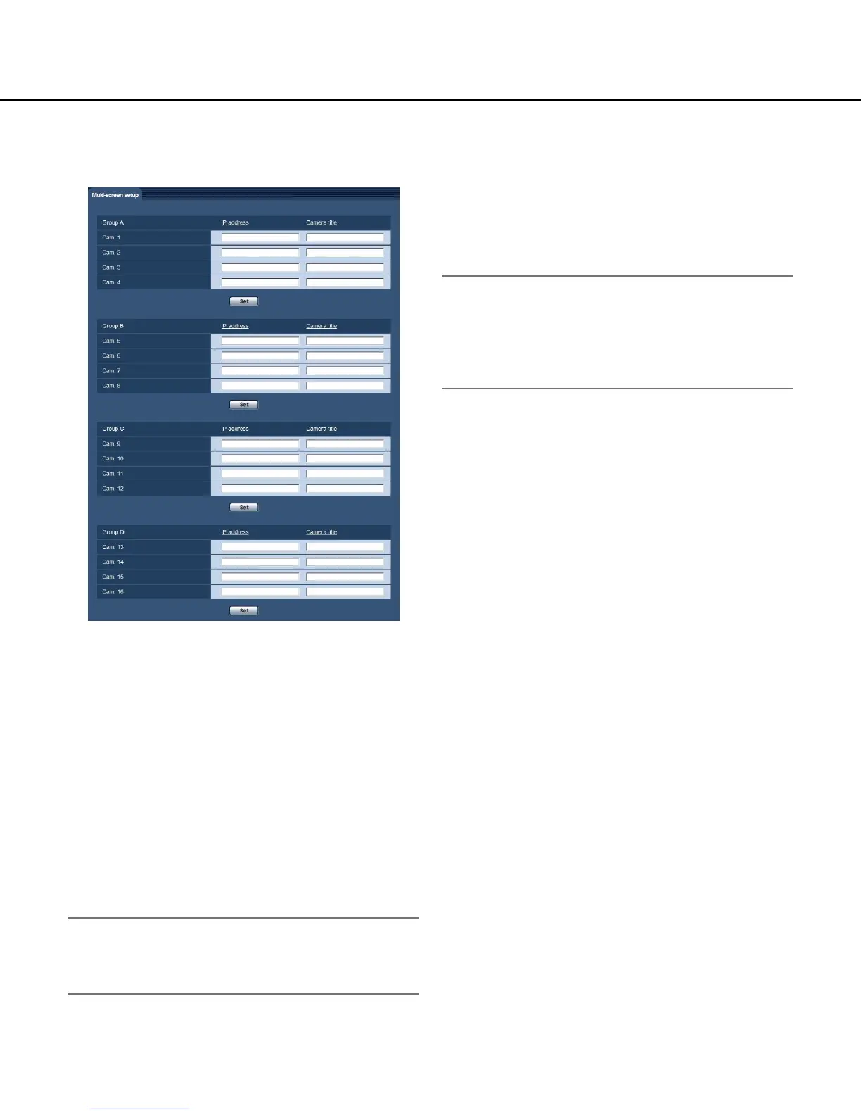 The cameras from which images are to be displayed on a multi-screen can be registered on the "Multi-screen"