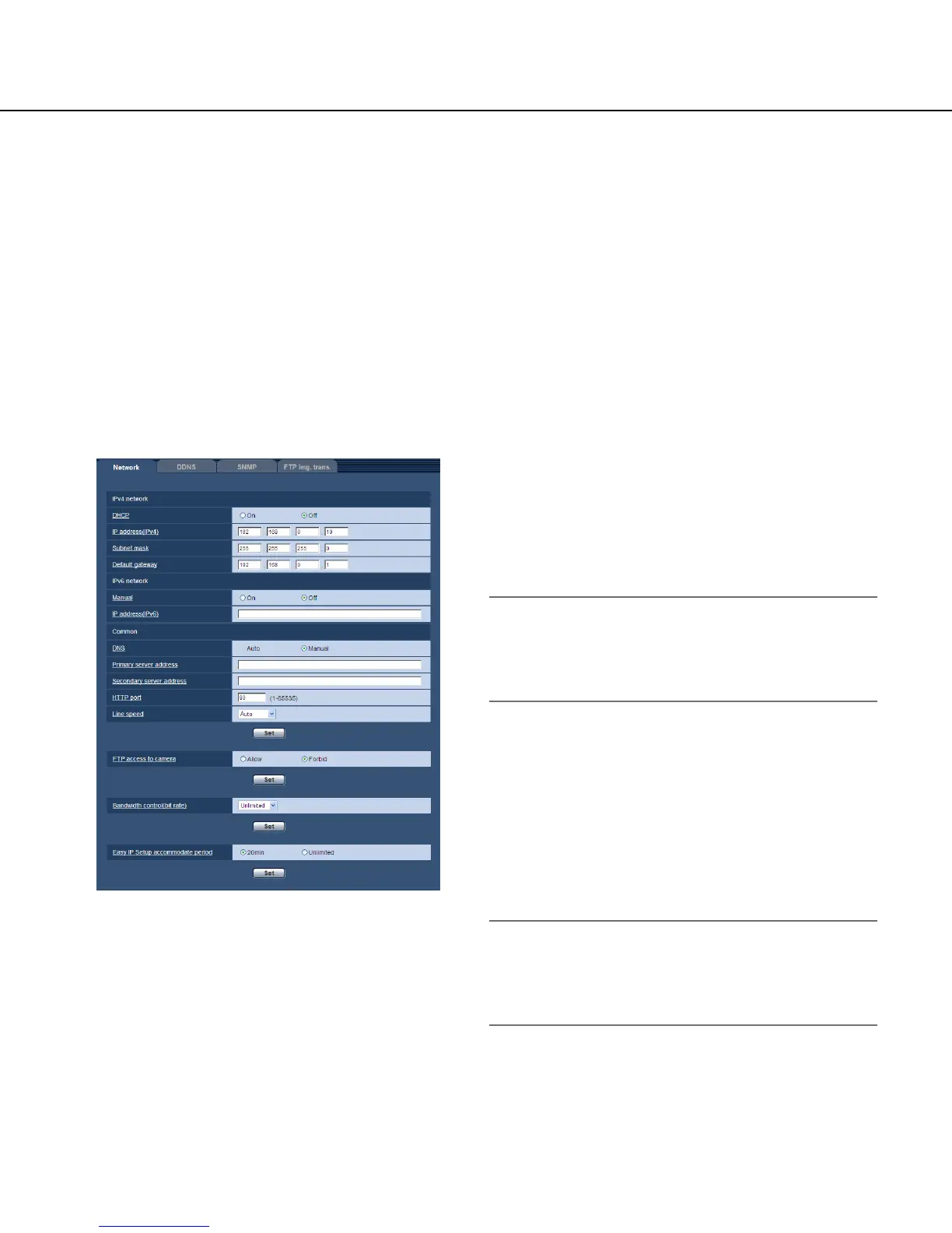 The"Network"pagehas4tabs;the[Network]tab,the[DDNS]tab,the[SNMP]tabandthe[FTPimg.trans.]tab.
