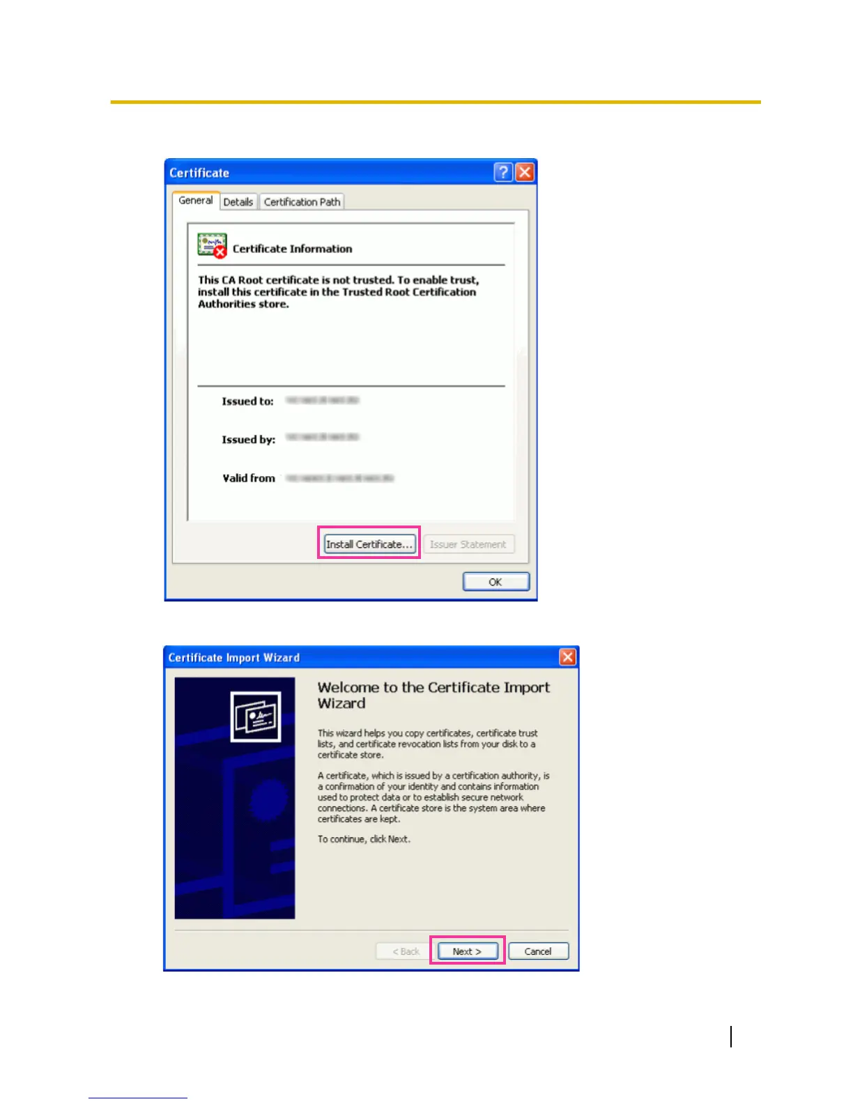 4. Click “Next” according to the procedures displayed on the displayed on “Certificate Import Wizard”.