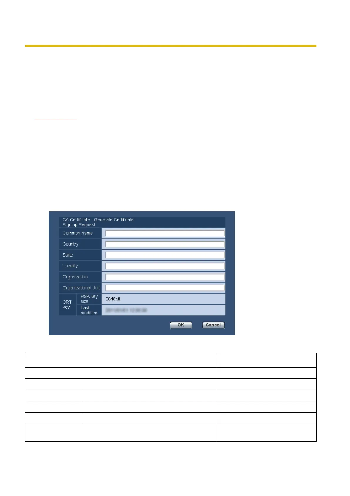→ The “CA Certificate - Generate Certificate Signing Request” dialog box will be displayed.
