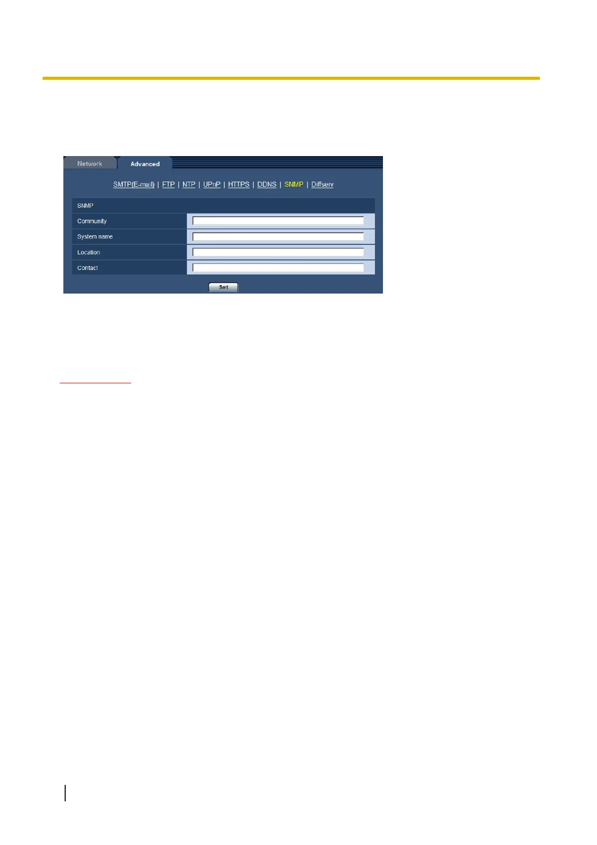 • When using the SNMP function, it is necessary to enter the community name. When no community
