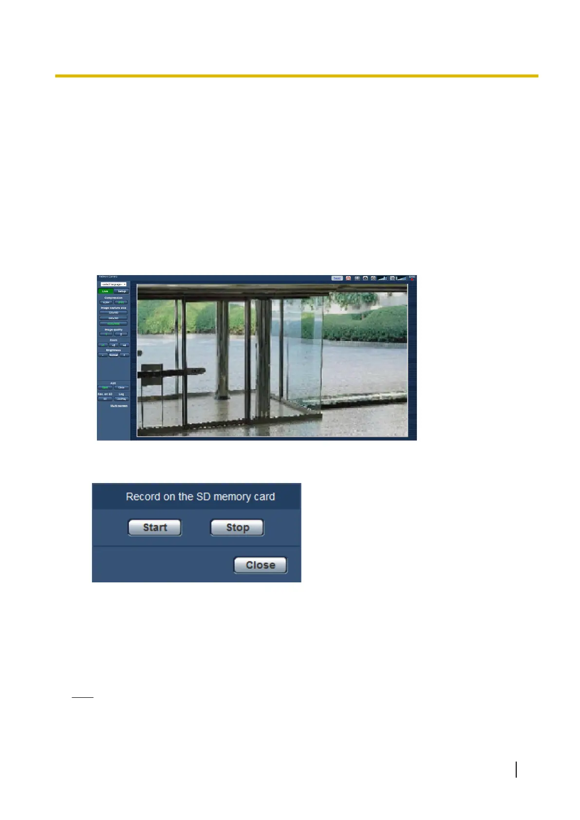Images displayed on the “Live” page can be recorded on the SD memory card manually. This button is operable