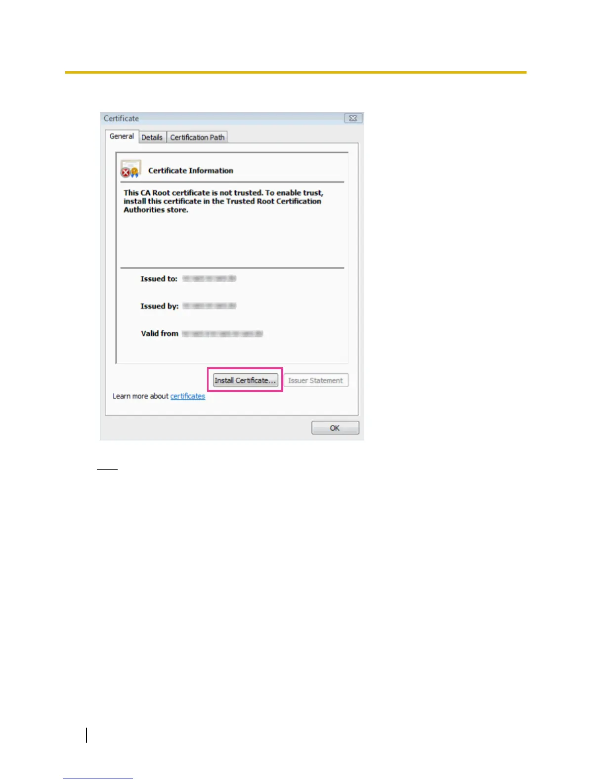 • If [Install Certificate...] is not displayed, close Internet Explorer once, and select [Run as
