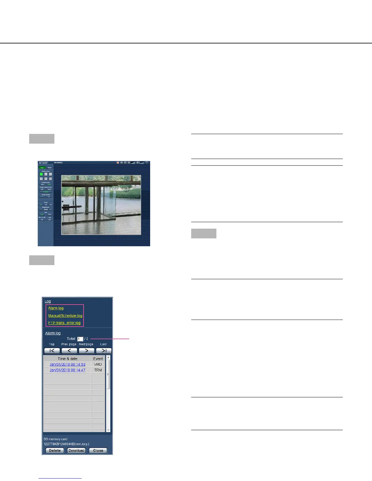 • Manual/Schedulelog: Logsfiledwhenimageshavebeenrecordedmanuallyorduringtheperiodofthesched-