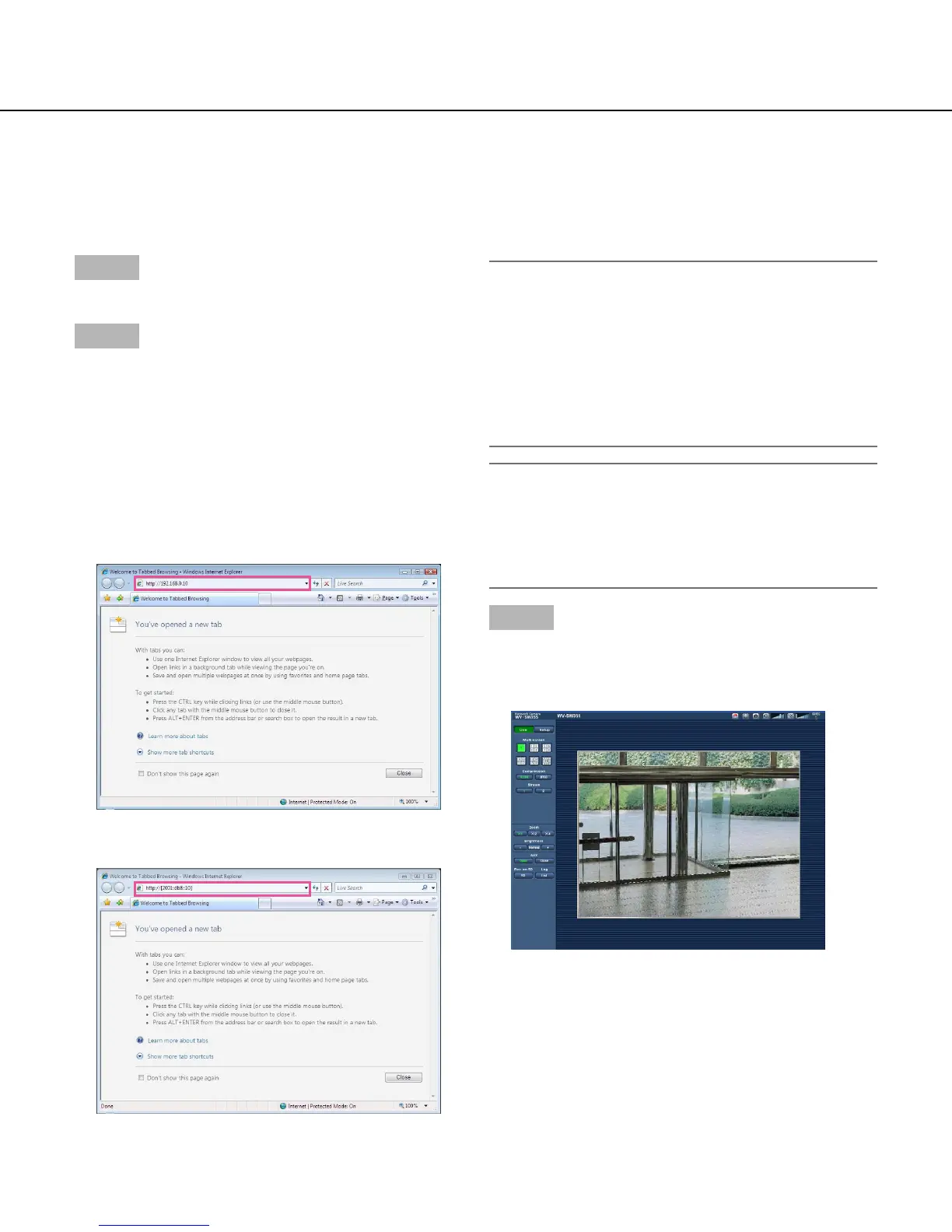 Enter the IP address designated using the Panasonic IP
