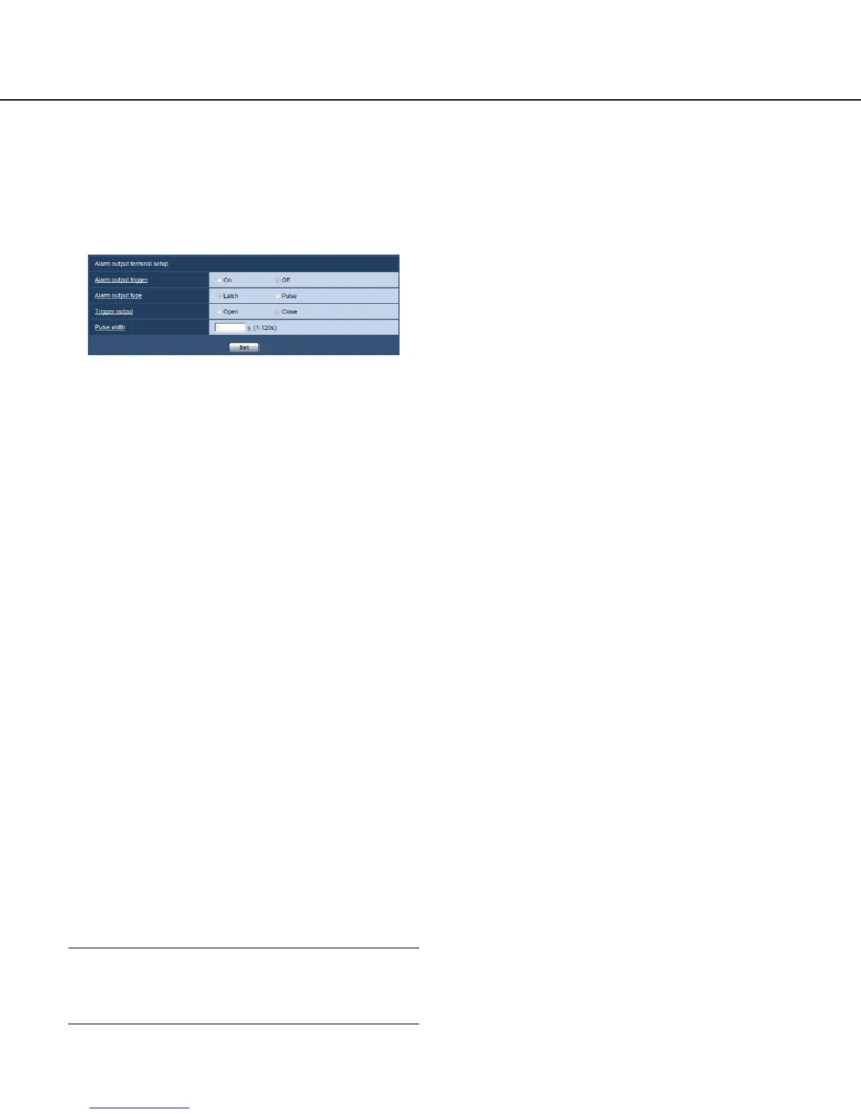 When "Pulse" is selected for "Alarm output terminal