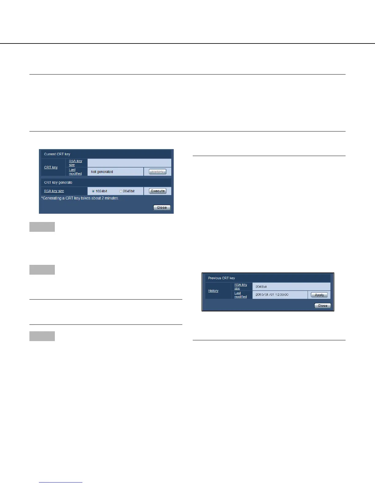 the key size is 2048 bit. Do not operate the web browser until the generation of CRT key is complete. While the