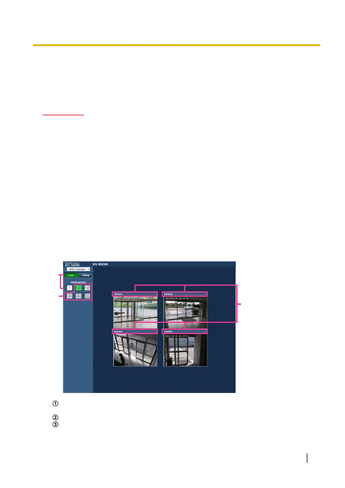→ Images from the registered cameras will be displayed on a selected multi-screen (screen can be split