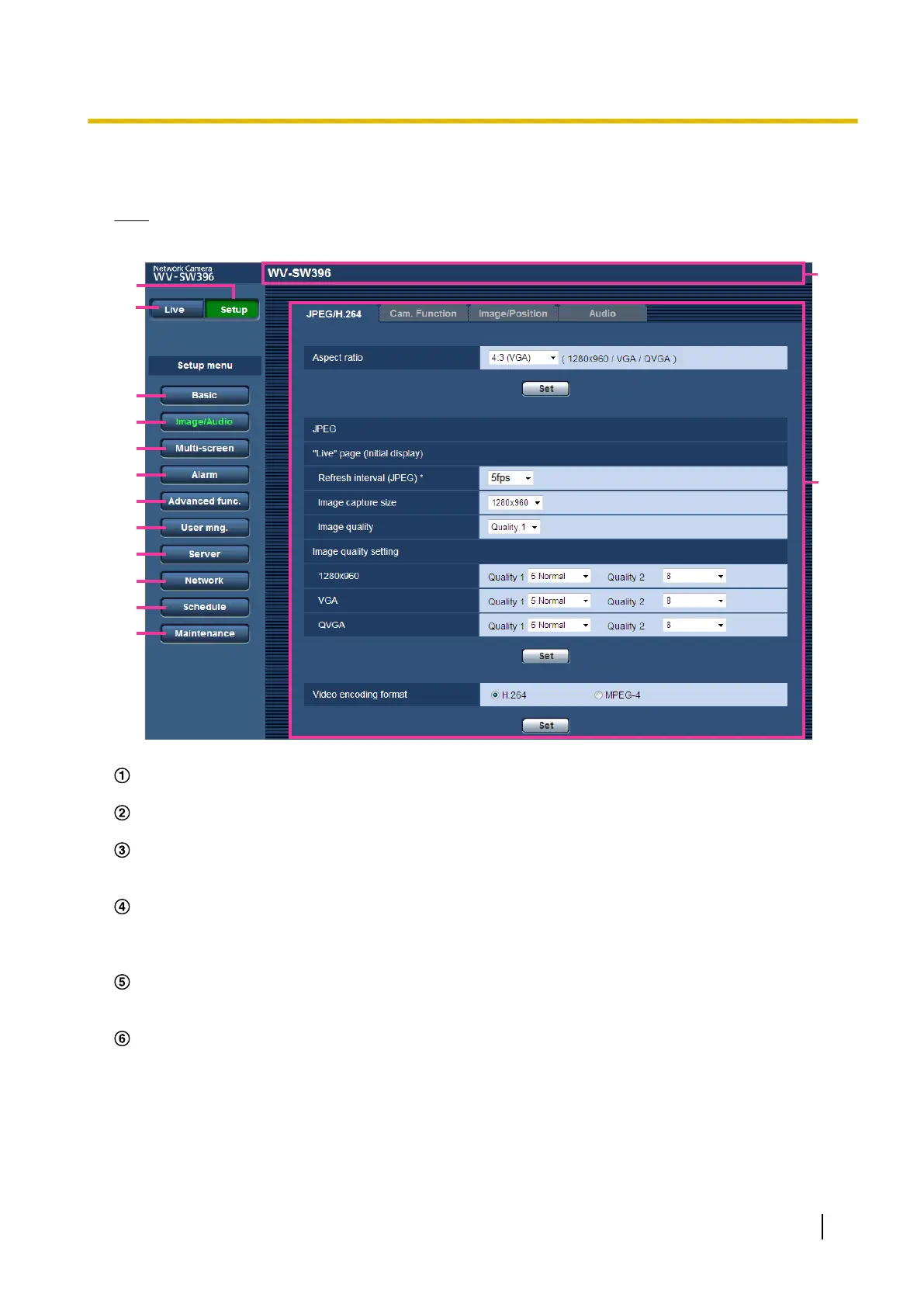 actions of JPEG/H.264 (or MPEG-4) camera images can be configured on the “Image/Audio” page.