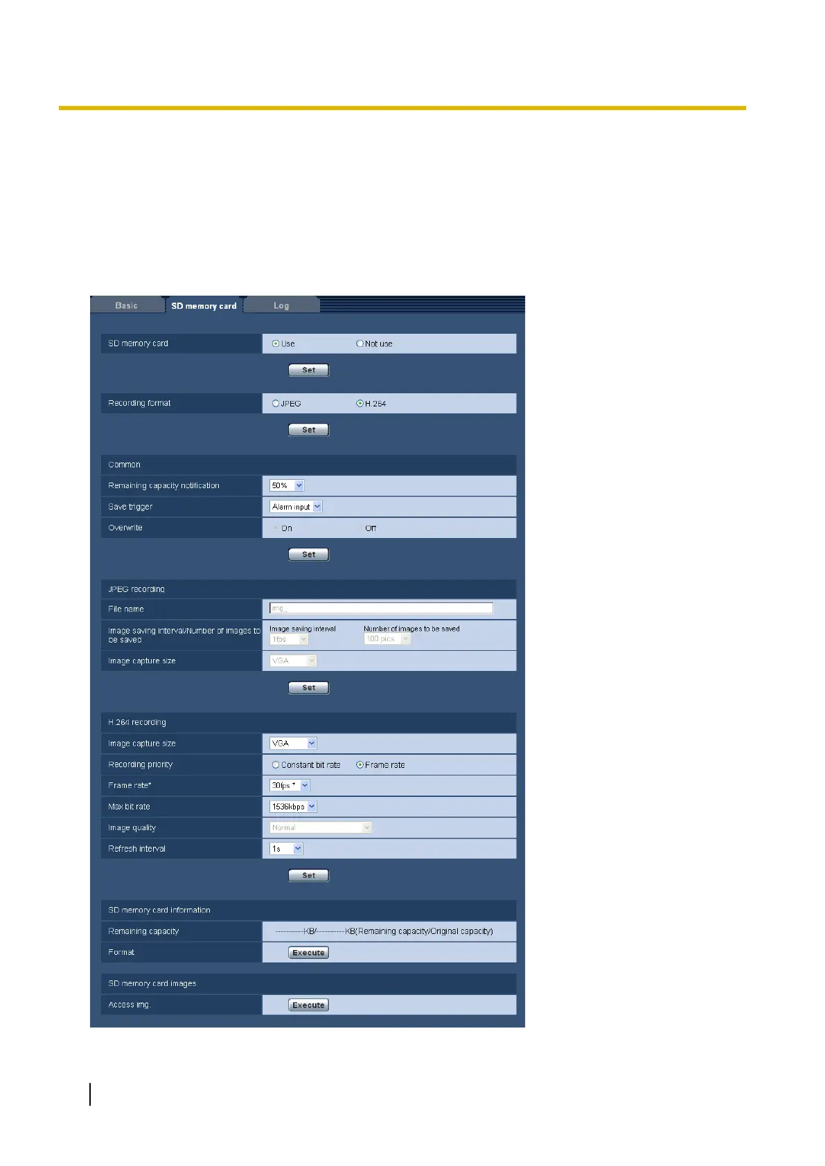 The settings relating to the SD memory card can be configured on this page.