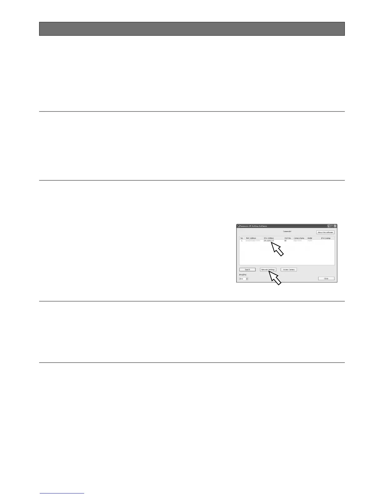 IfthePanasonicIPsettingsoftwaredoesnotwork,configurethenetworksettingsofthecameraandthePCindividuallyon