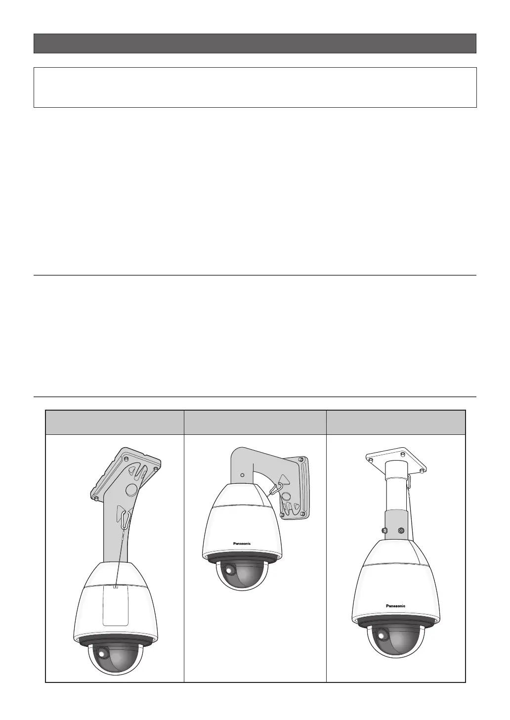 • Whenmountingthiscameratoaceiling,mountitusingtheceilingmountbracket(WV-Q121B)(option)oracustom-