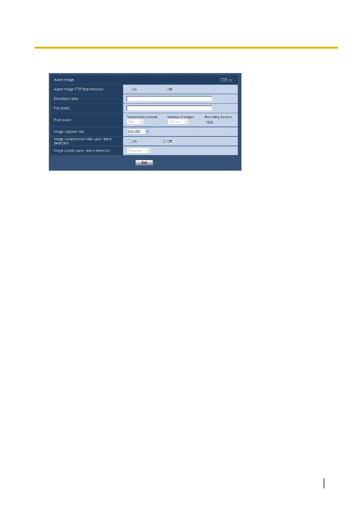 Enter the file name used for the alarm image to be transmitted to an FTP server. The file name will be as