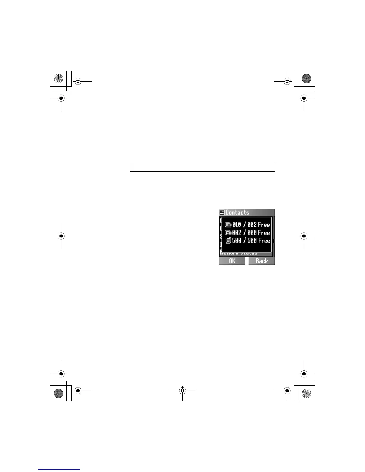 Memory status shows how many locations are available in the