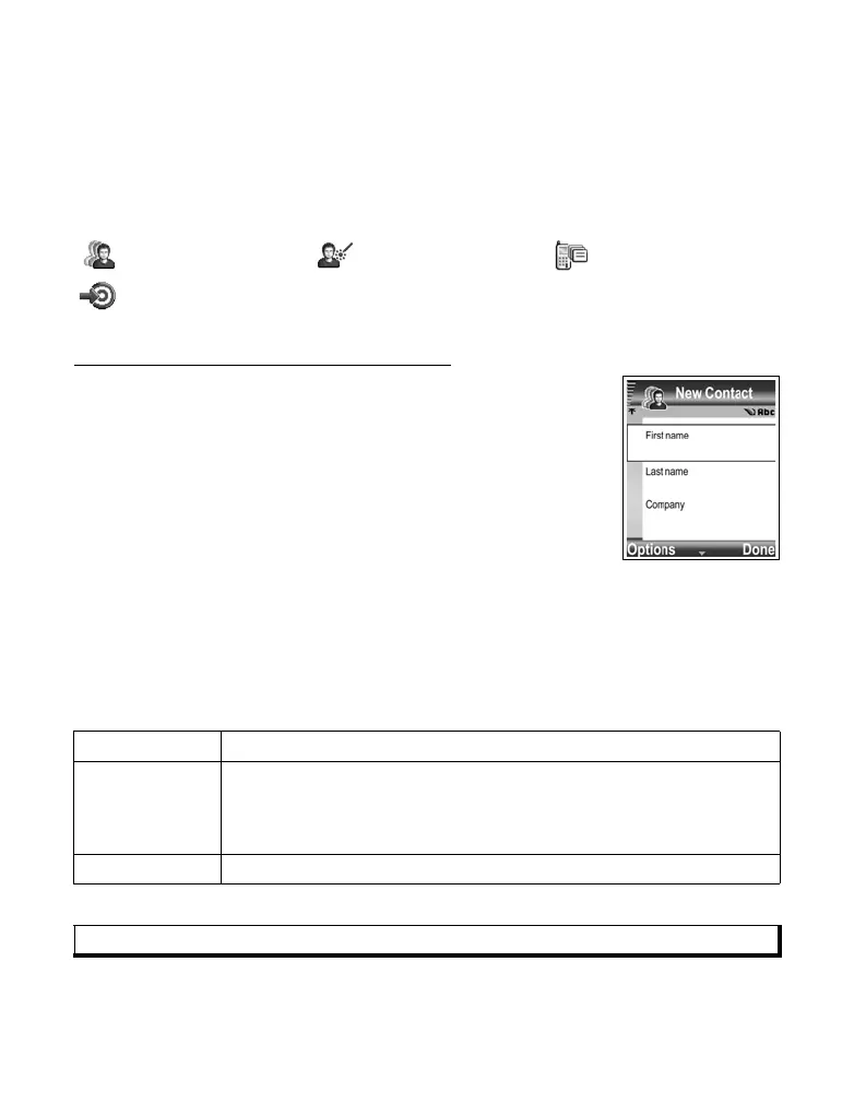 fields, 3 Web addresses, 3 street address fields, DTMF tones, Birthday,