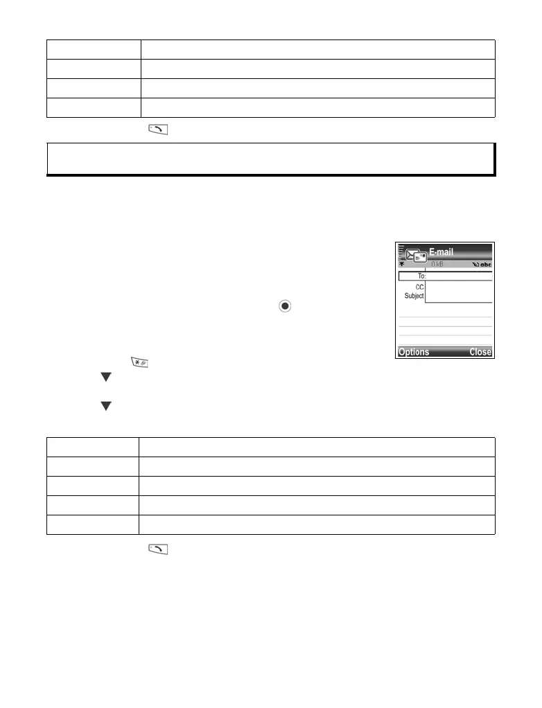 6. To send, press or press Options and select Send.