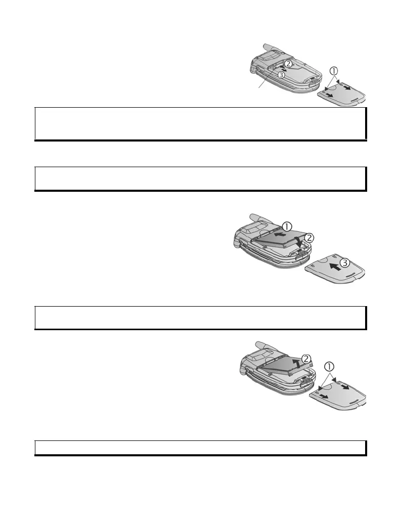 Note: Before you remove the battery, switch off the phone and disconnect the phone from the