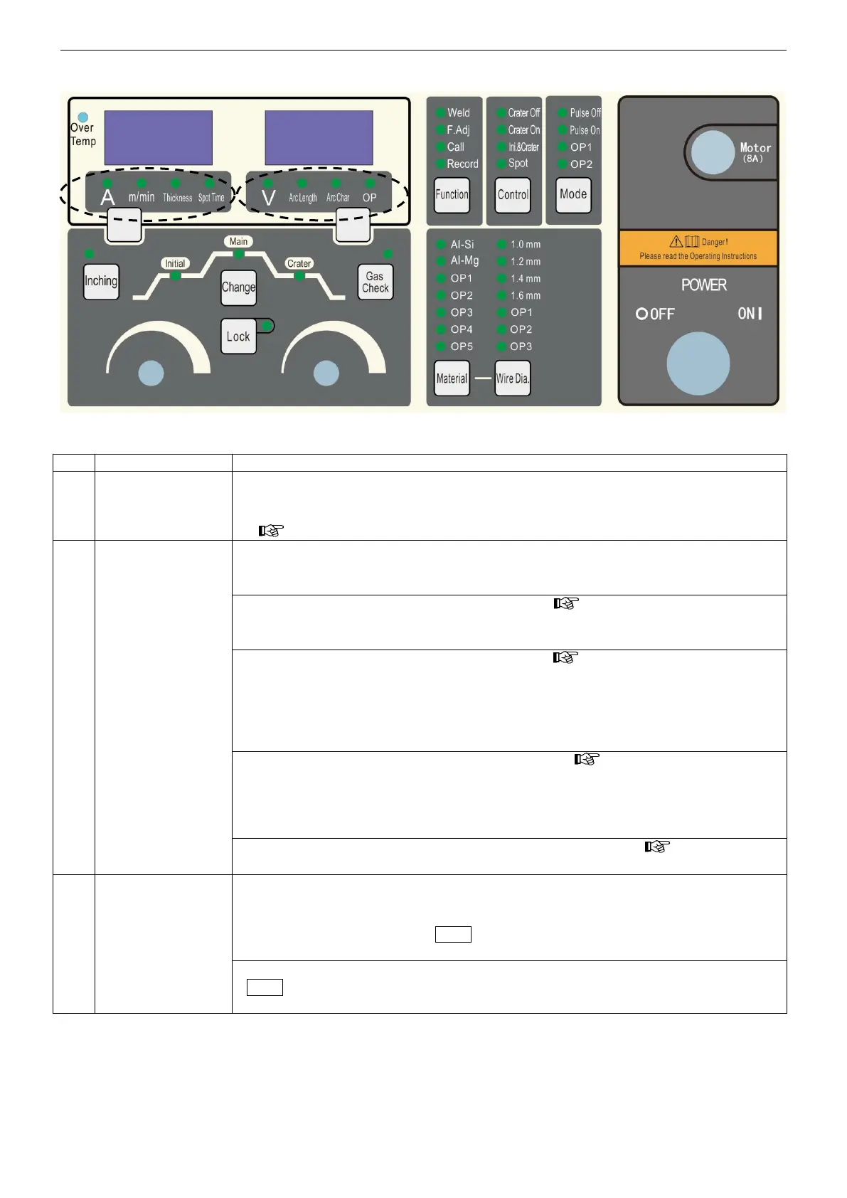 setting current and voltage. Flashing means welding parameters are being stored.