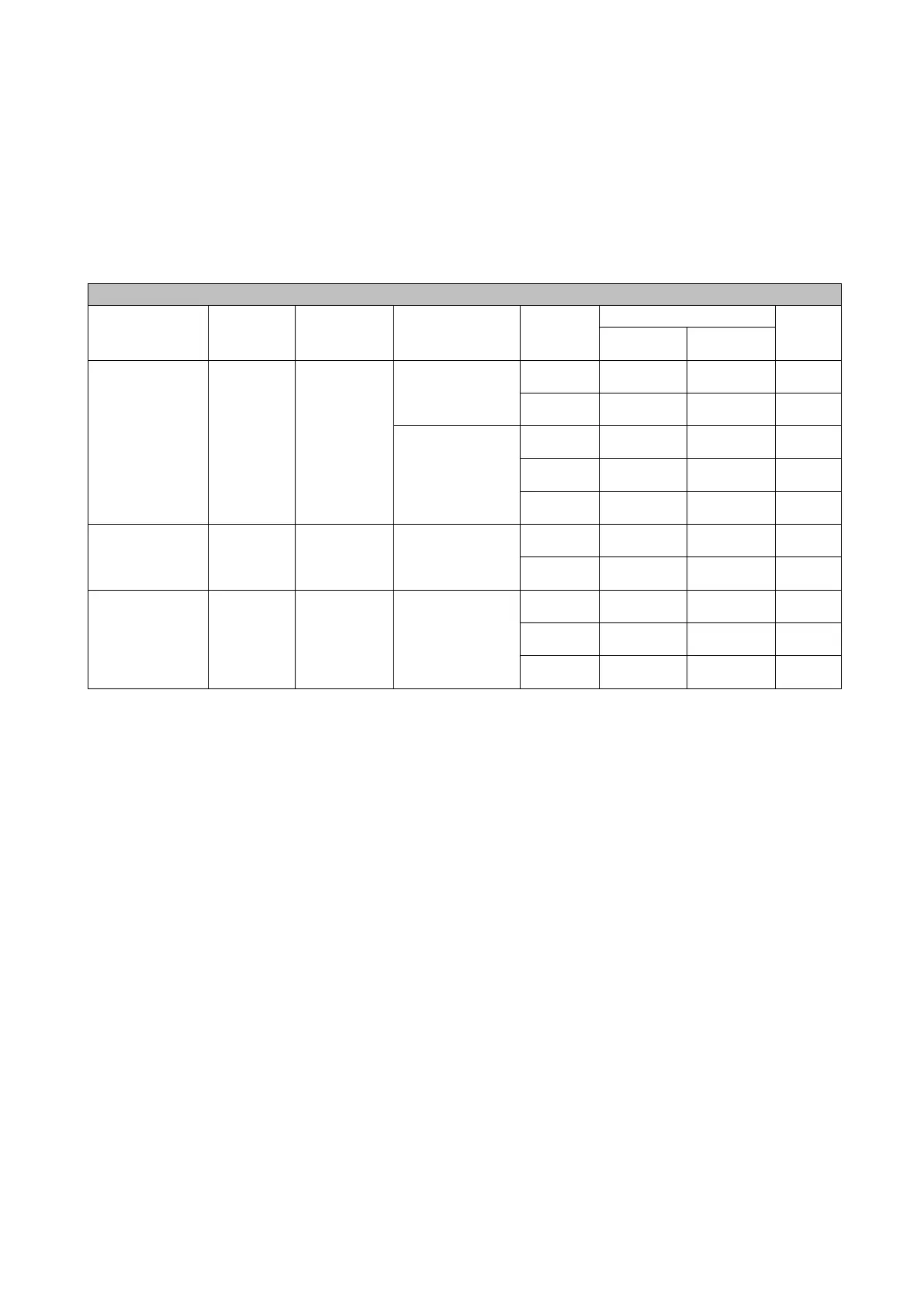 Note: × stands for no data, stands for standard configuration data,.