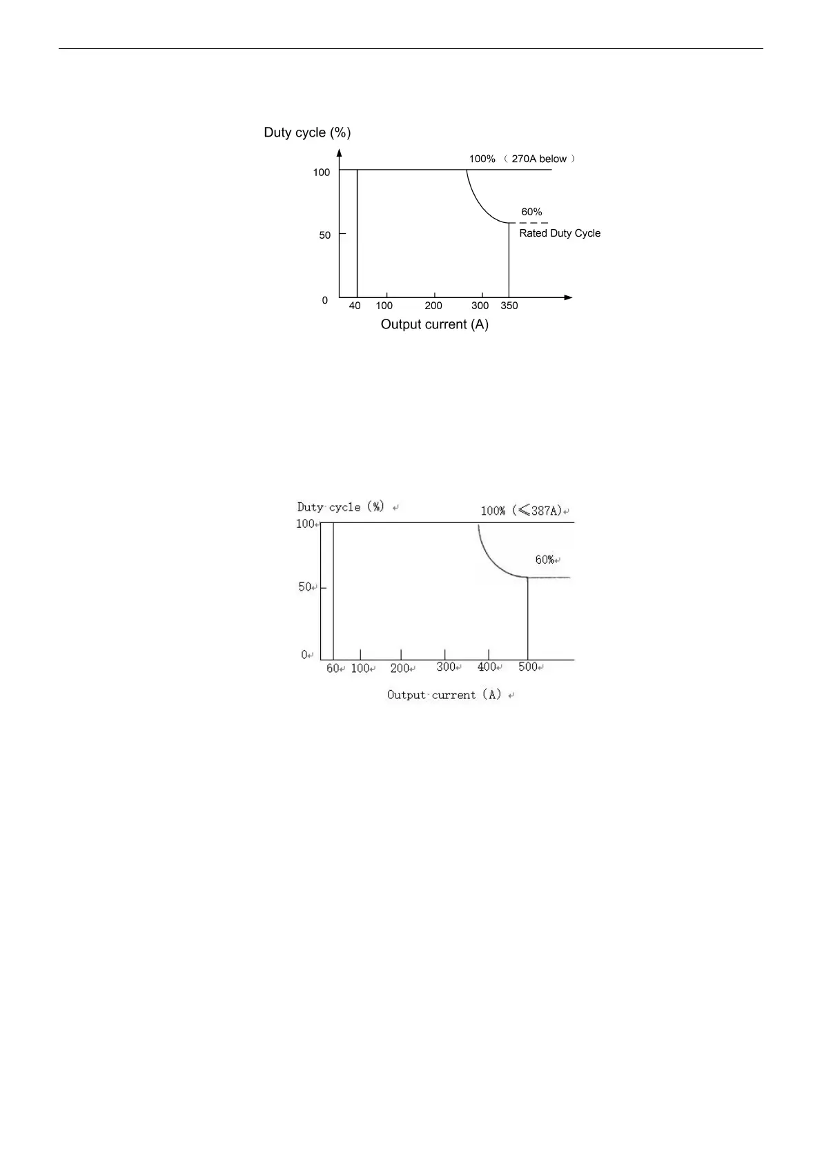 The figure above shows the ideal value of cutting current and duty cycle. Please use the machine within the