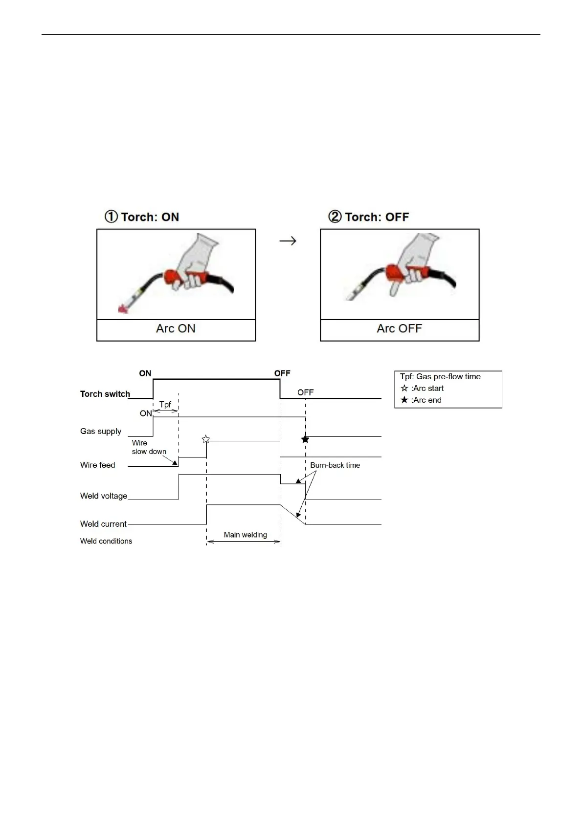 Operation: Turn the torch switch on and off to start and stop welding arc respectively.