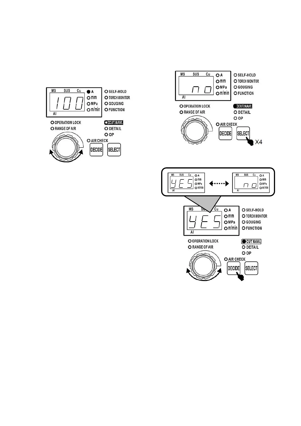 4 times, cutting navigation LED is lit.