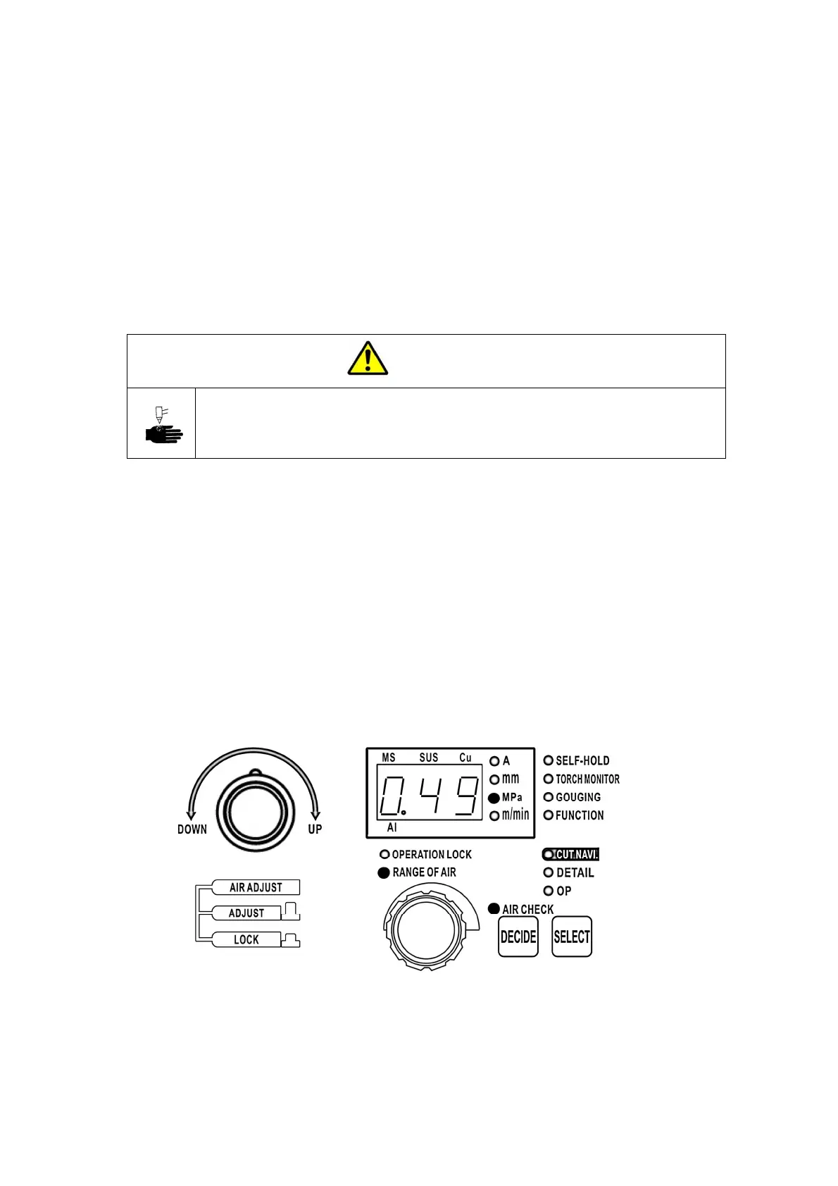 ·During confirmation, please do not press the cutting torch switch.
