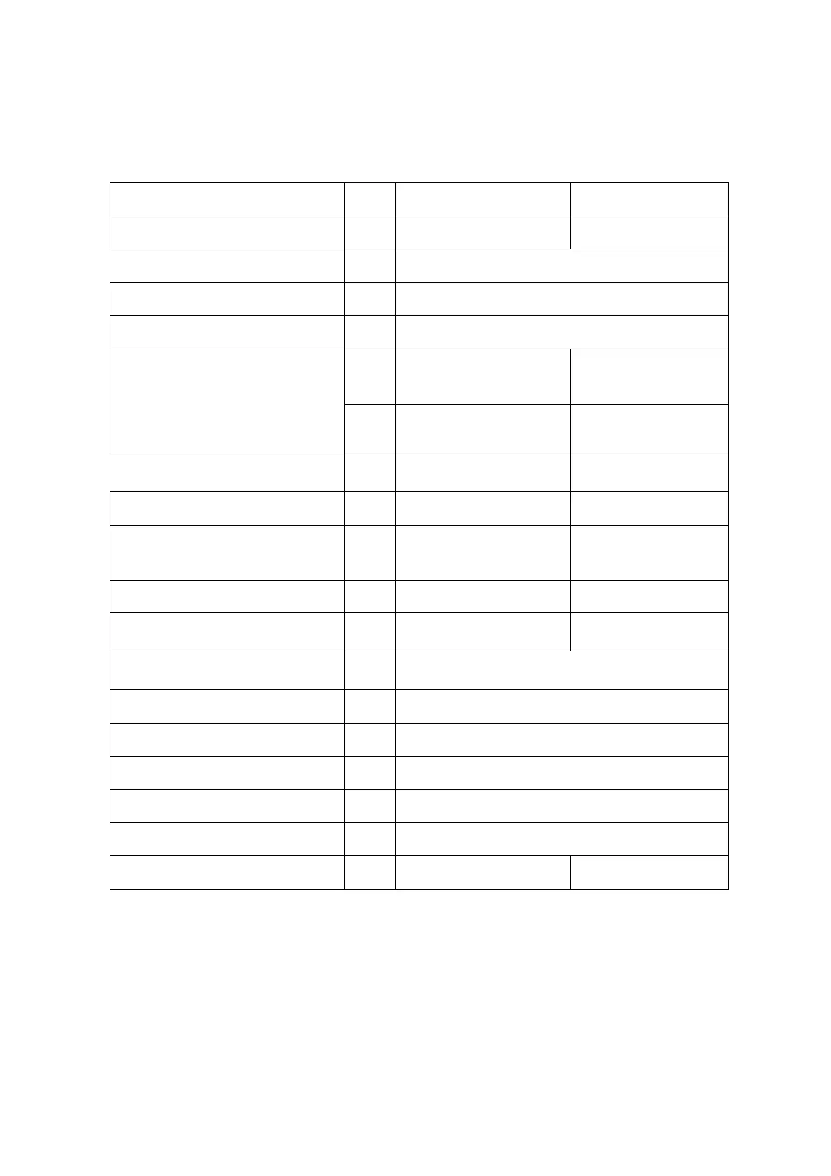 3.1 Specifications table