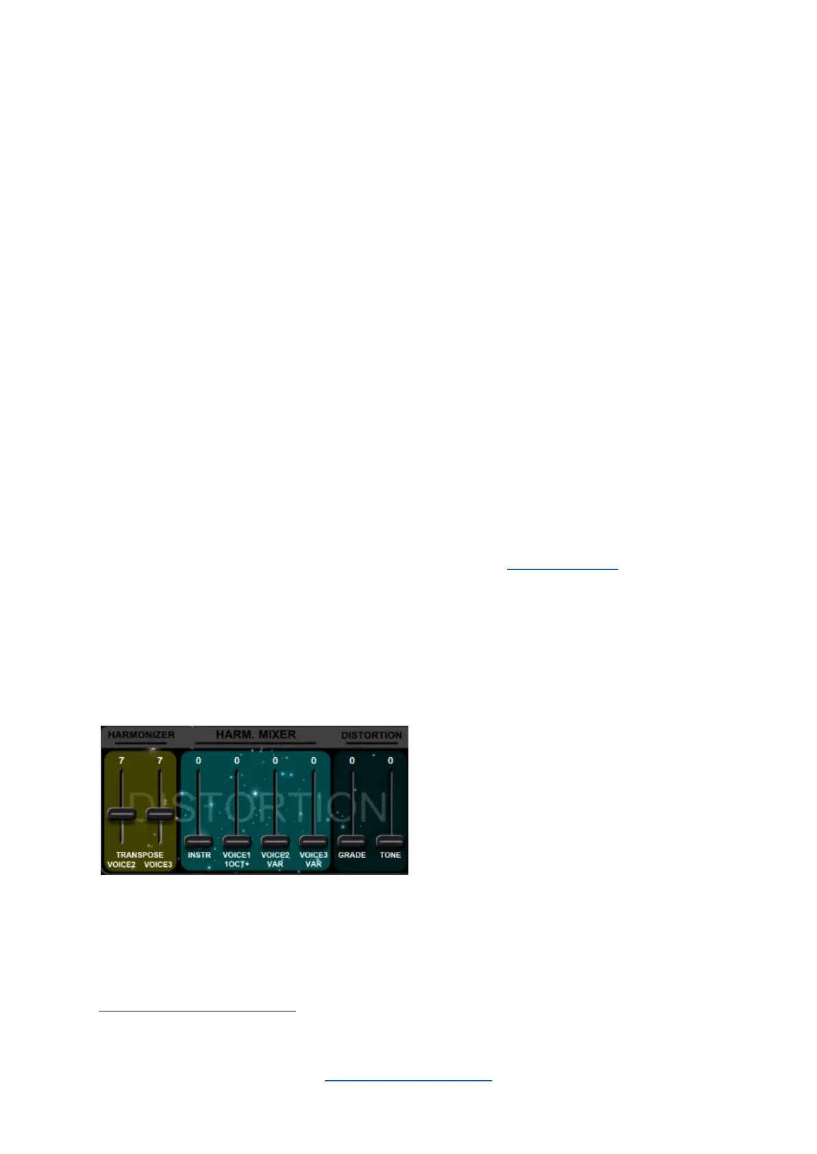 transposed voices generated by the Harmonizer. VOICE1 is fixed at 1 octave above the