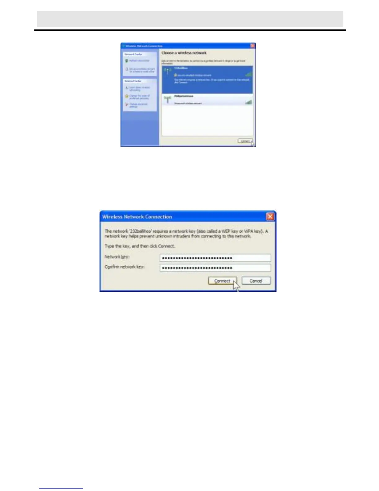 Windows XP prompts you to enter the network’s security key to