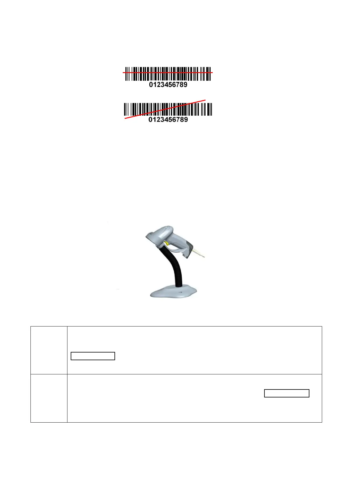 When the scanner is scanning, ensure the laser beam crosses every bar and space of the barcode. See