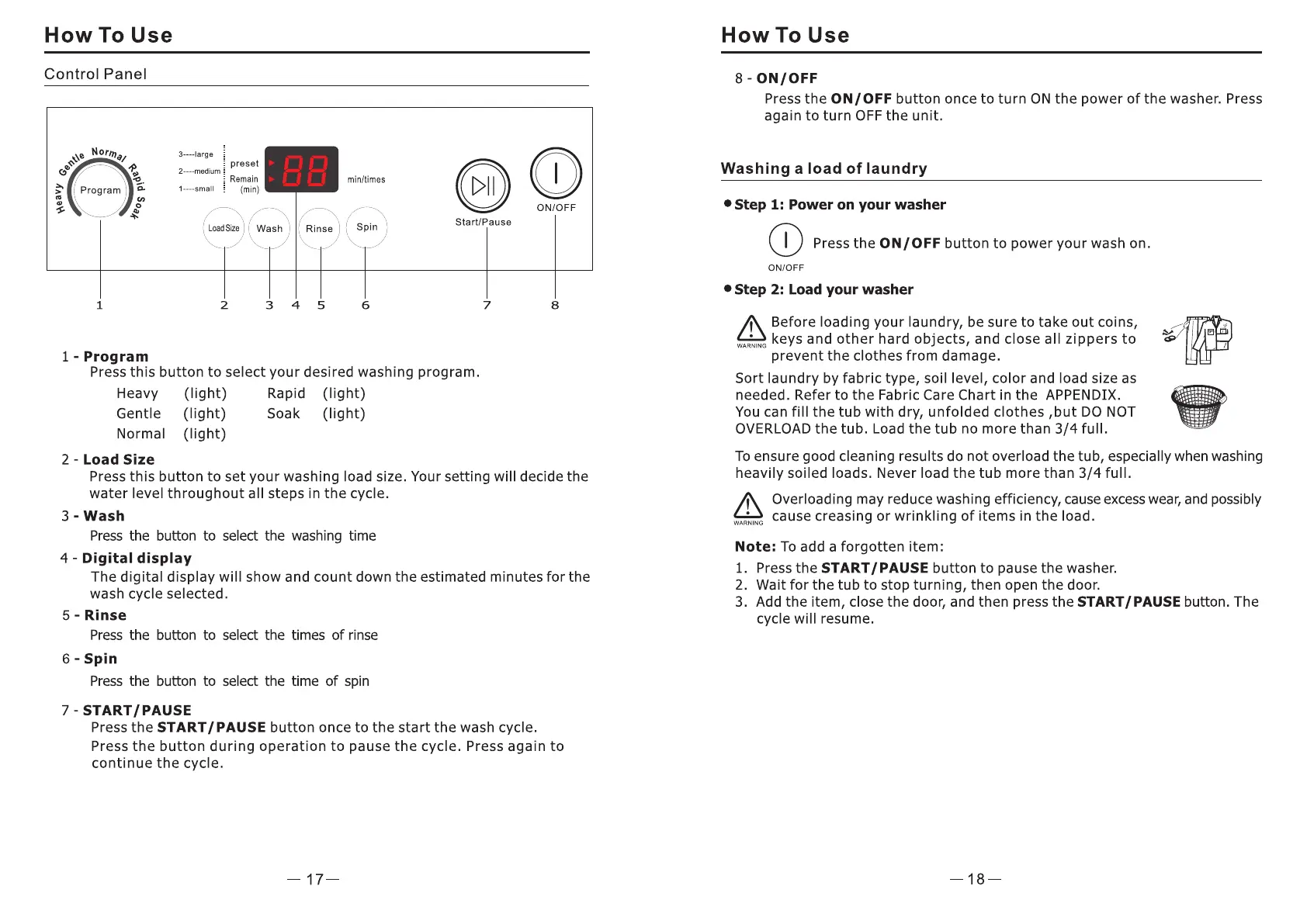 Panda PAN30SW - How To Use; Control Panel Overview; Washing a Load of Laundry