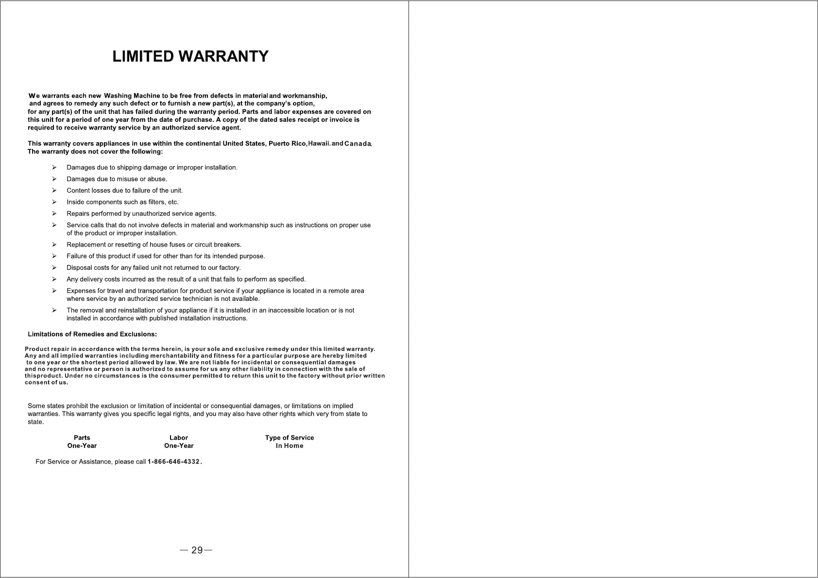 Panda PAN30SW - LIMITED WARRANTY; Limited Warranty Details