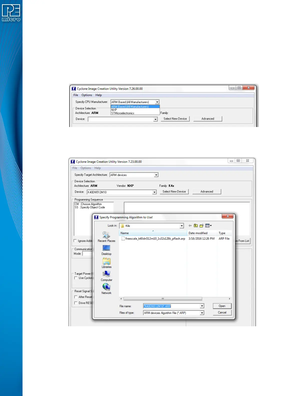 Algorithm for the target device. They can navigate to the algorithm using the dialog provided.