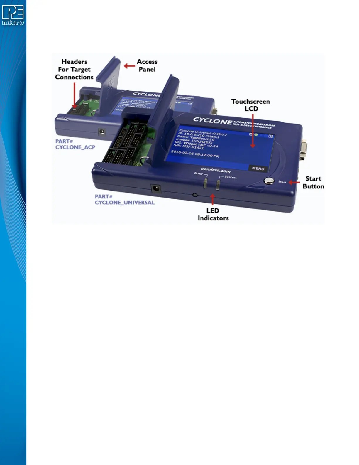 The following is an overview of the features and interfaces of Cyclone LC programmers. Many of