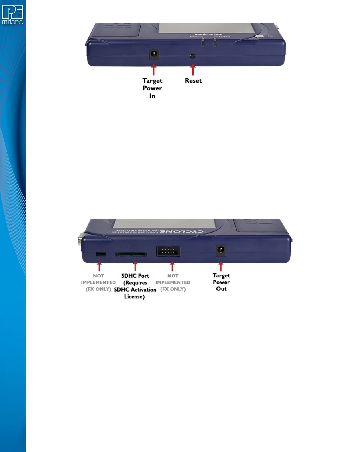 Note: The SDHC port is activated on all Cyclone FX programmers, and may be activated on Cyclone