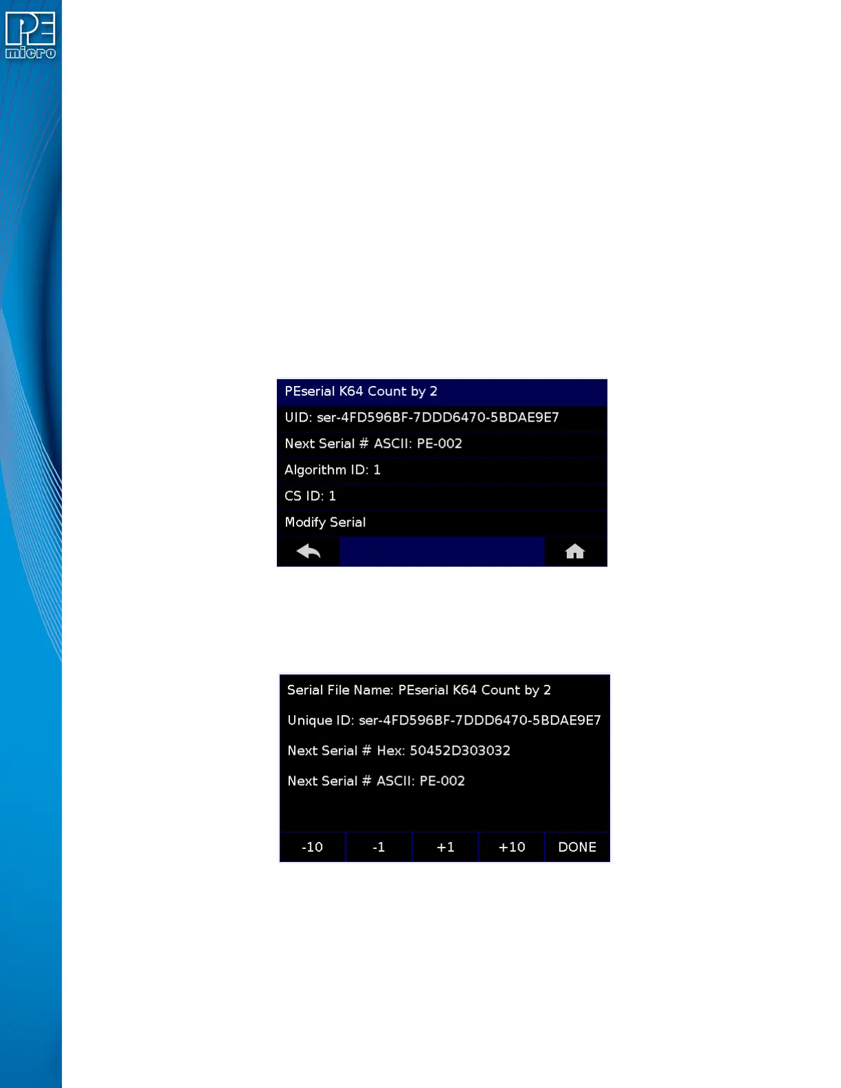 • Next Serial # ASCII - Next serial number to be programmed (shown in ASCII format)