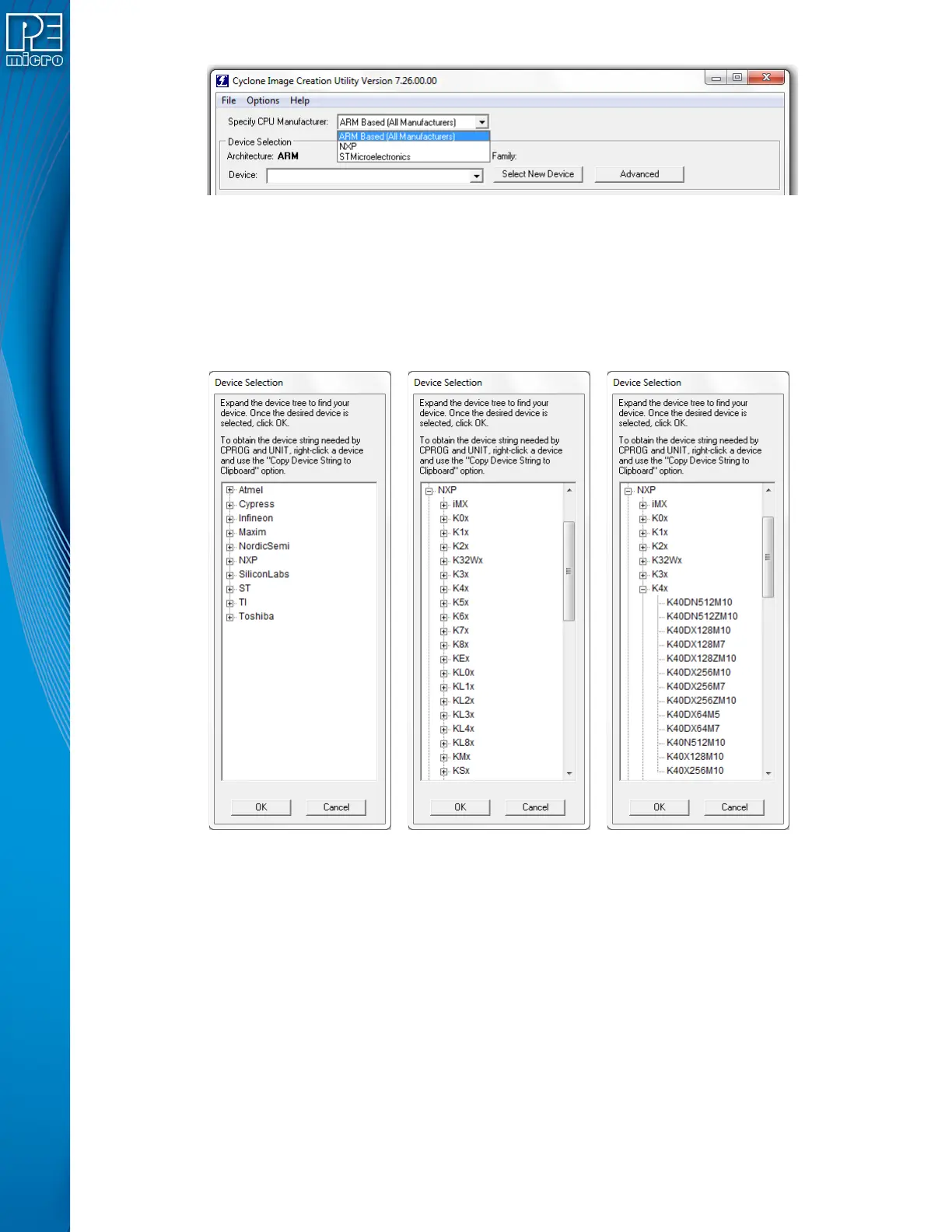 If the user chooses NXP or STMicroelectronics from the Specify CPU Manufacturer list, they