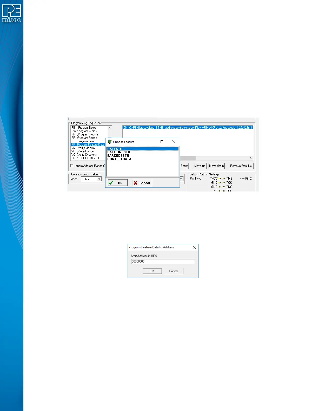 options to program dynamic data programming on the target device. To use Program Feature Data