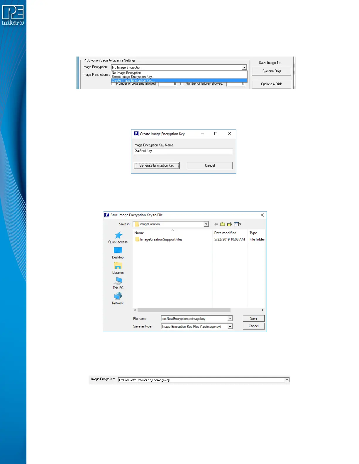 “Image Encryption” combo-box in the Cyclone Image Creation Utility and choose the “Create