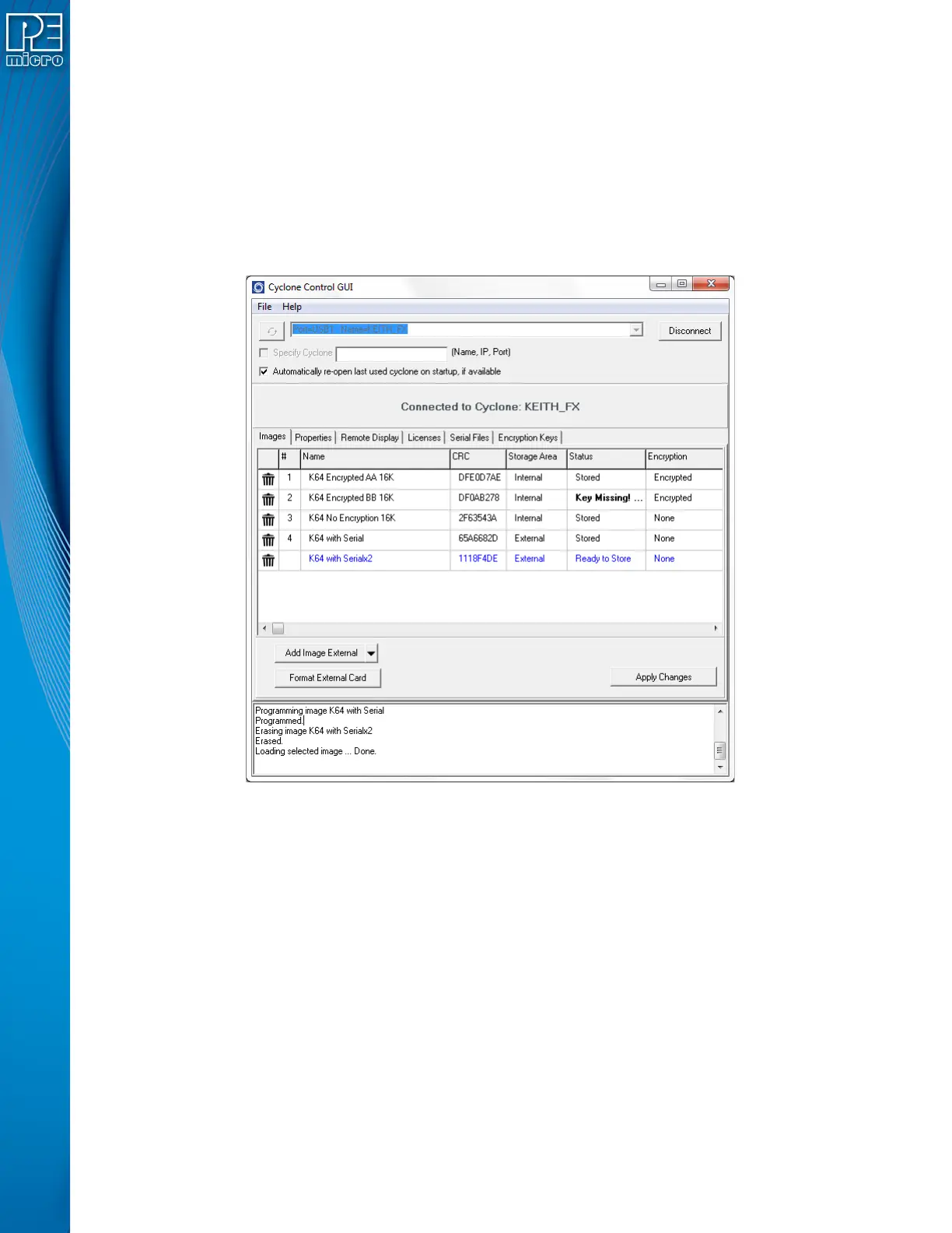memory and on external memory cards. To add a new image to the Cyclone, click on the “Add