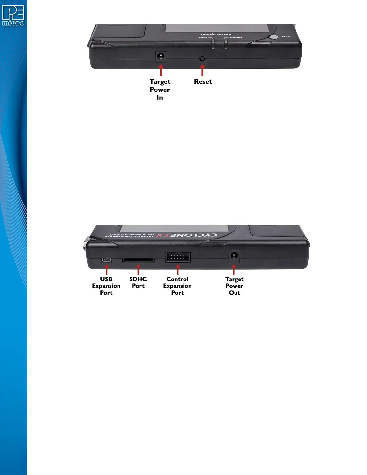Note: The SDHC port is activated on all CYCLONE FX programmers, and may be activated on