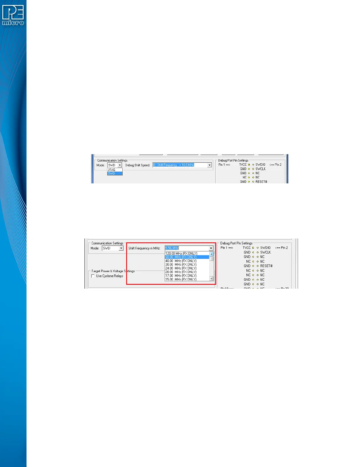 SWD Mode is selected from the “Communication Mode” drop-down box in the Cyclone Image