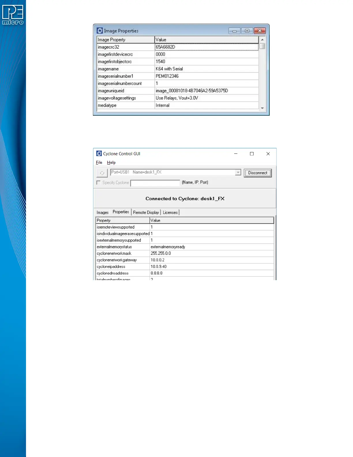 for the supported features of the Cyclone. From this tab the Cyclone firmware and logic versions,
