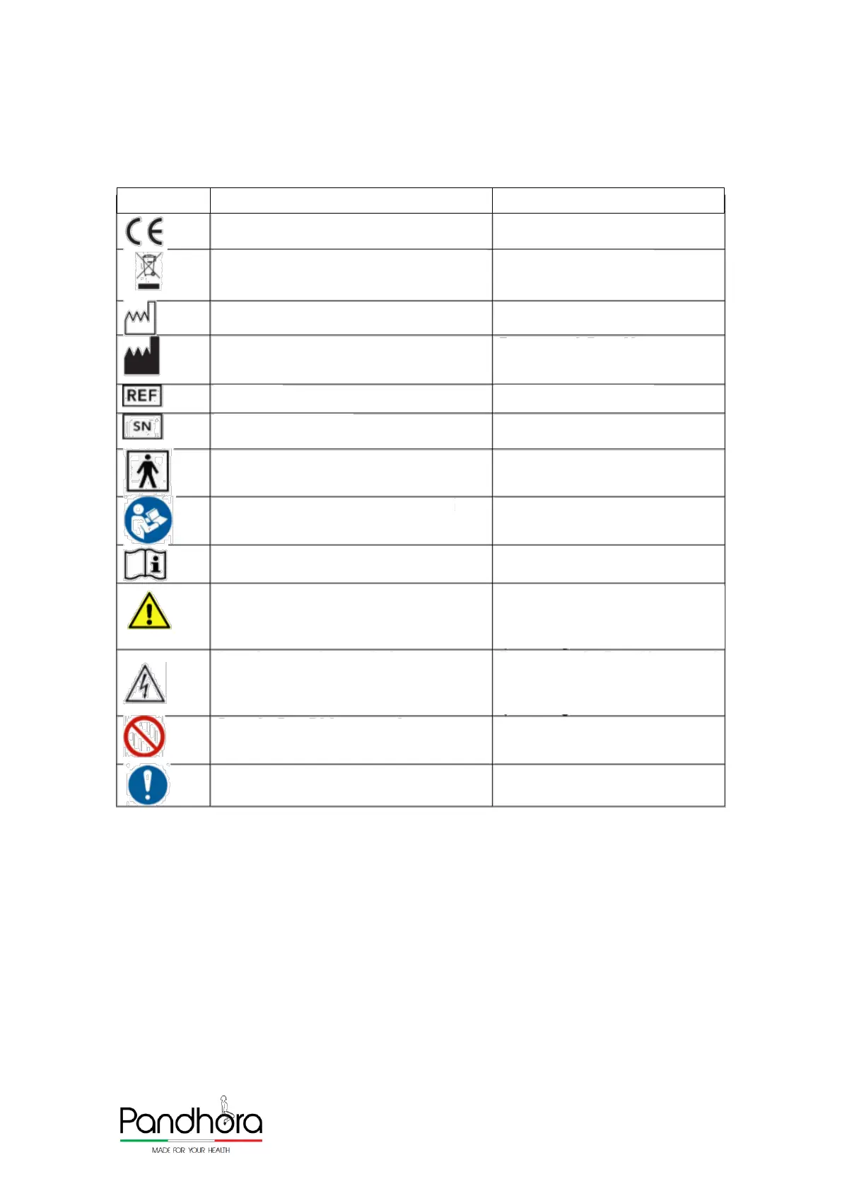 The symbols and their meaning used in this manual and on the device are described in the table below.