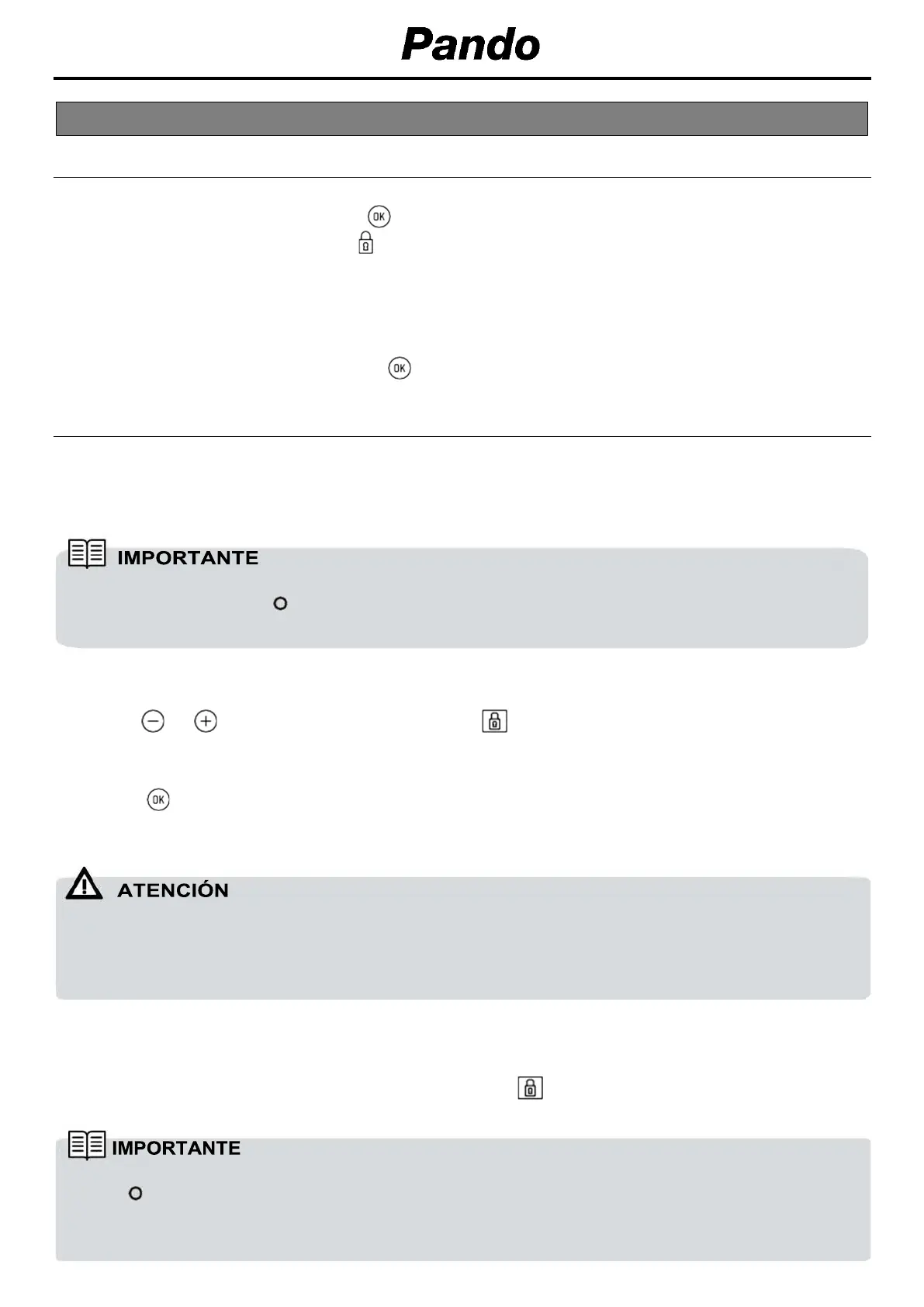 escuche 1 beep sonoro y el símbolo aparezca en la pantalla. El display está bloqueado.