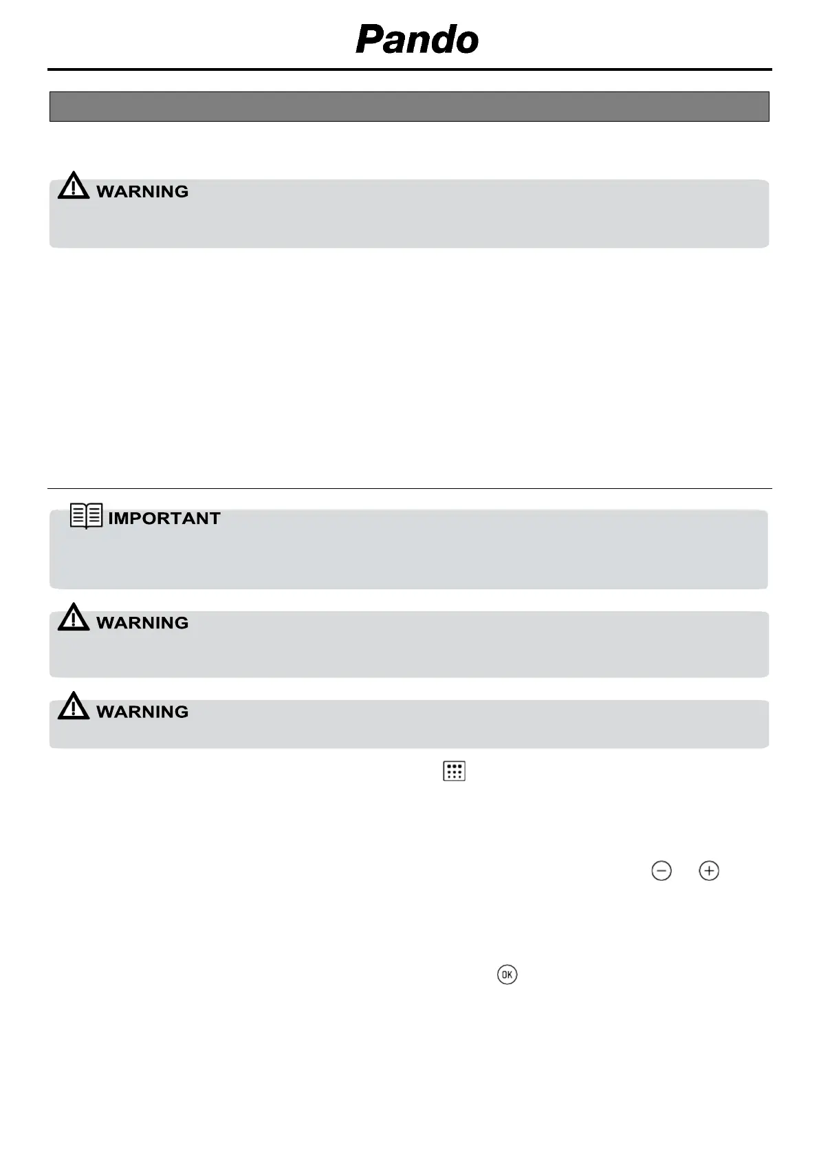 You can now change the pyrolysis programme to P1, P2 or P3 by pressing the or keys: